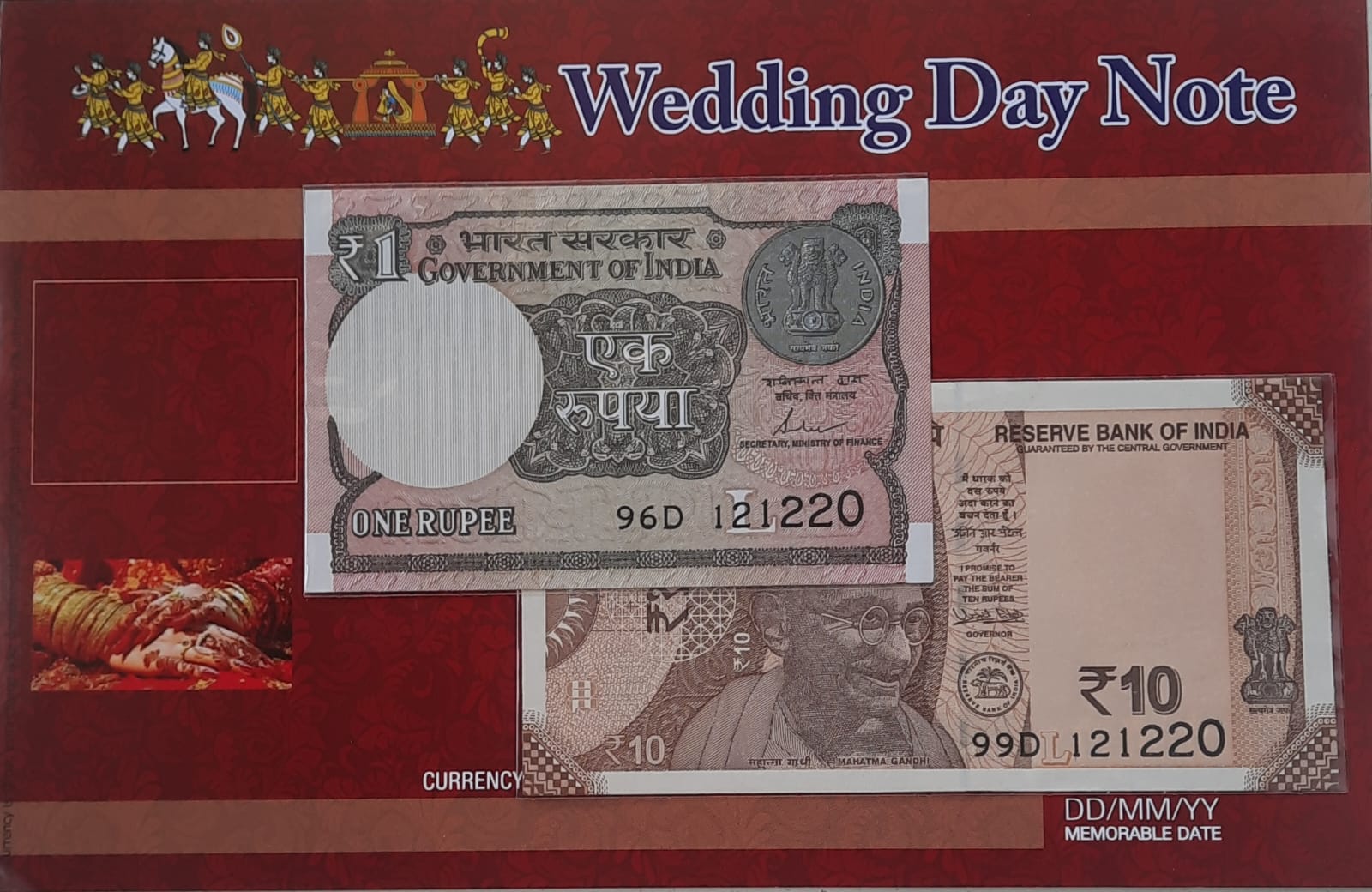 1 Rs & 10 Rs wedding date with currency note numbers matching your memorable dates in DDMMYY formet.