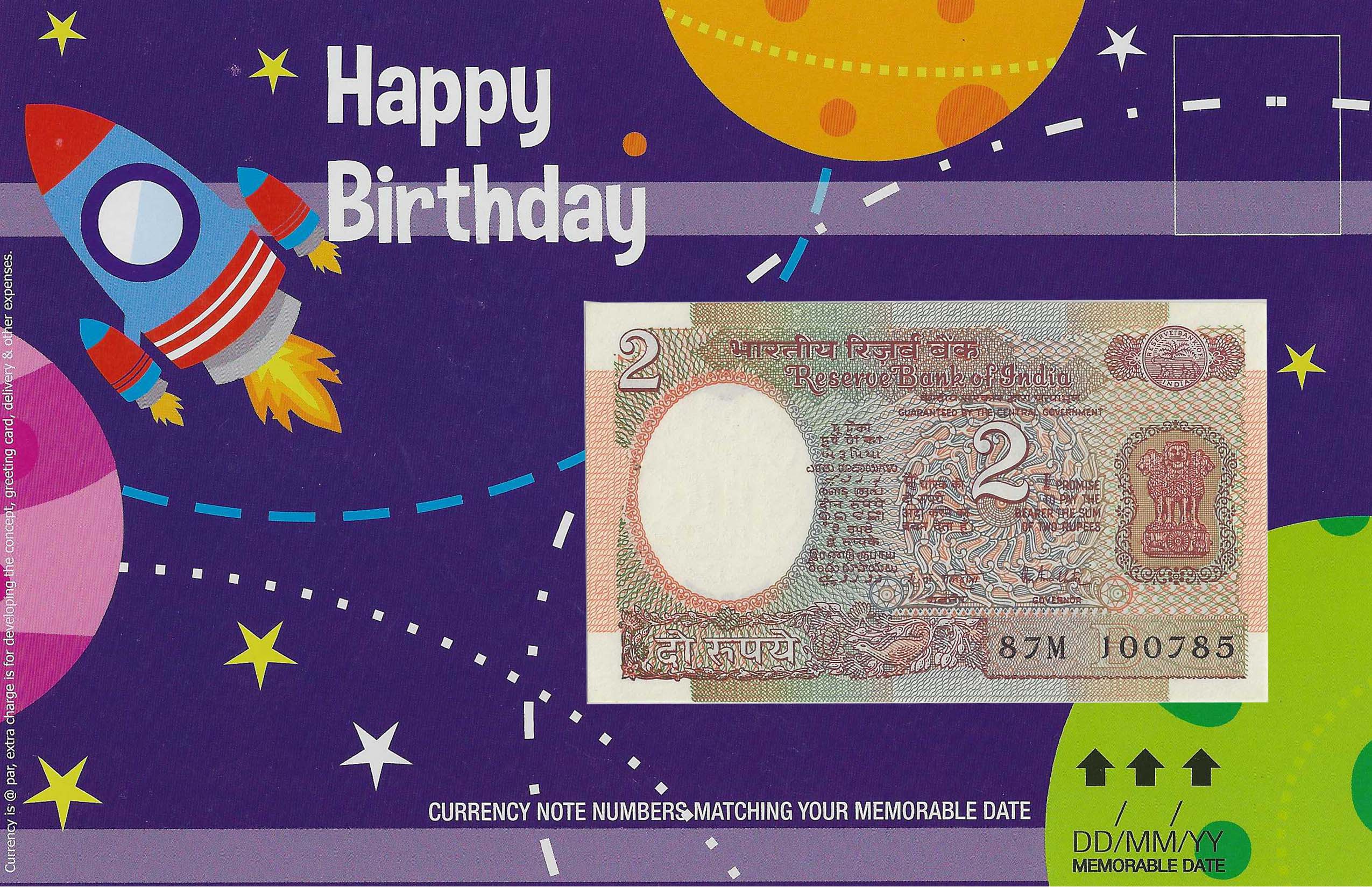 Birthday notes – Original currency note numbers matching your memorable date in DDMMYY format. Most affordable & compact. Can keep it anywhere or even can get it framed. Choose your denomination as per your budget or concept.