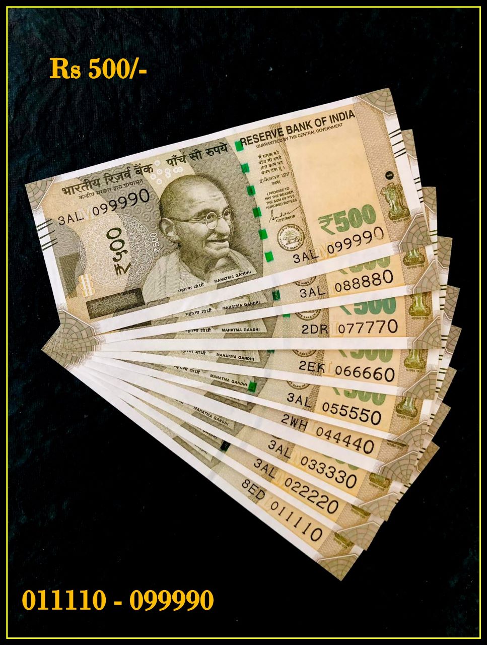 500 Rs New Design Semi fancy number 011110 to 099990 9 notes set