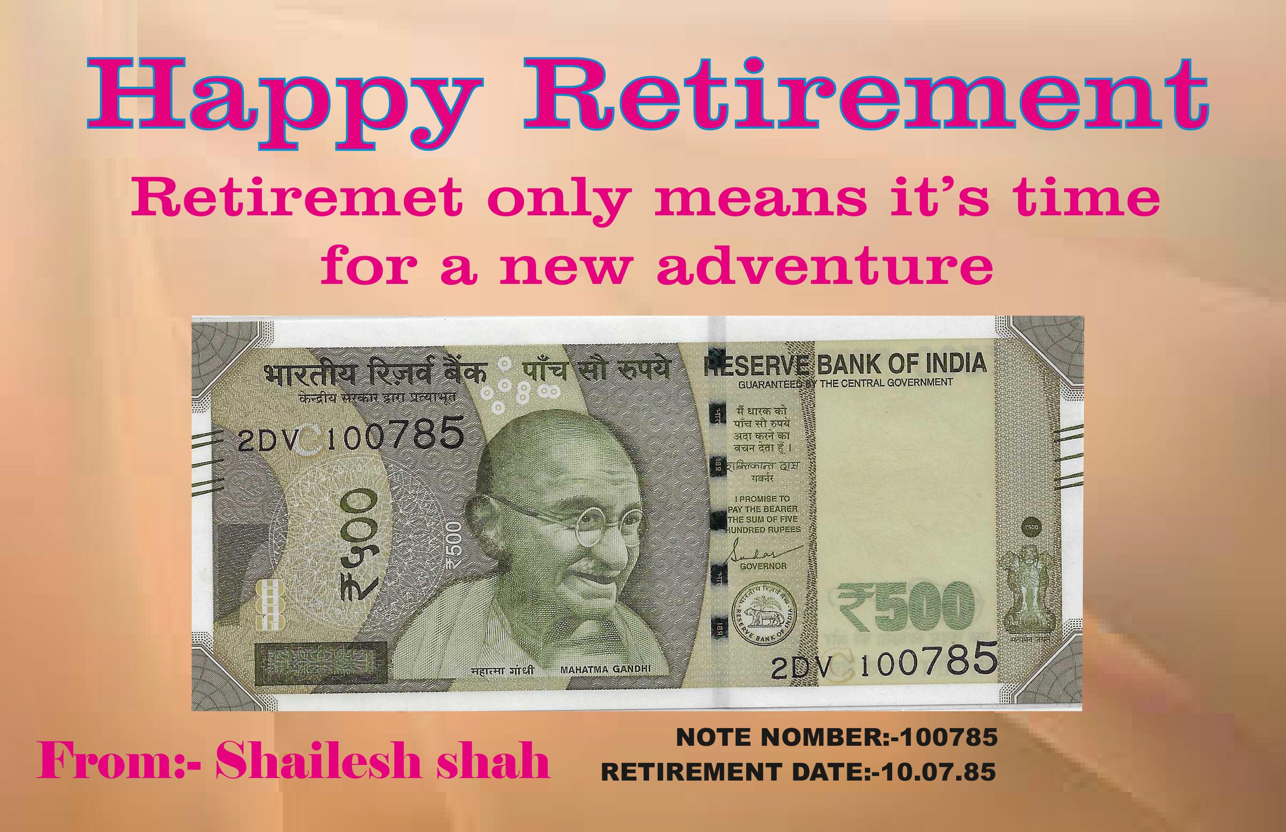 500 Rs Retirement date note,card 1