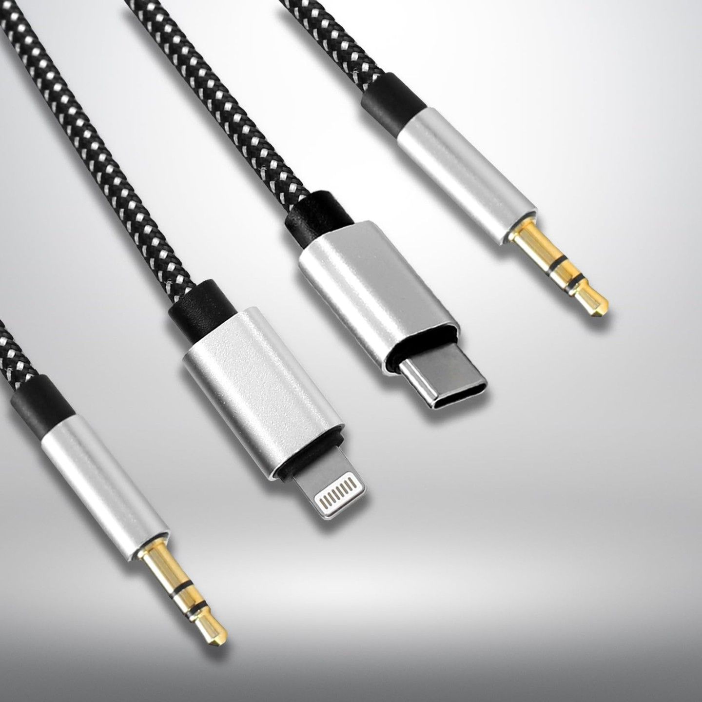 3 in 1 Car Aux Cable, USB C to 3.5mm Audio Cord Car Stereo Aux Cable, AUX to AUX Cable | Type C to AUX Cable | Lightning to AUX Cable | Universal HiFi Audio Cable for Android & iPhone Devices