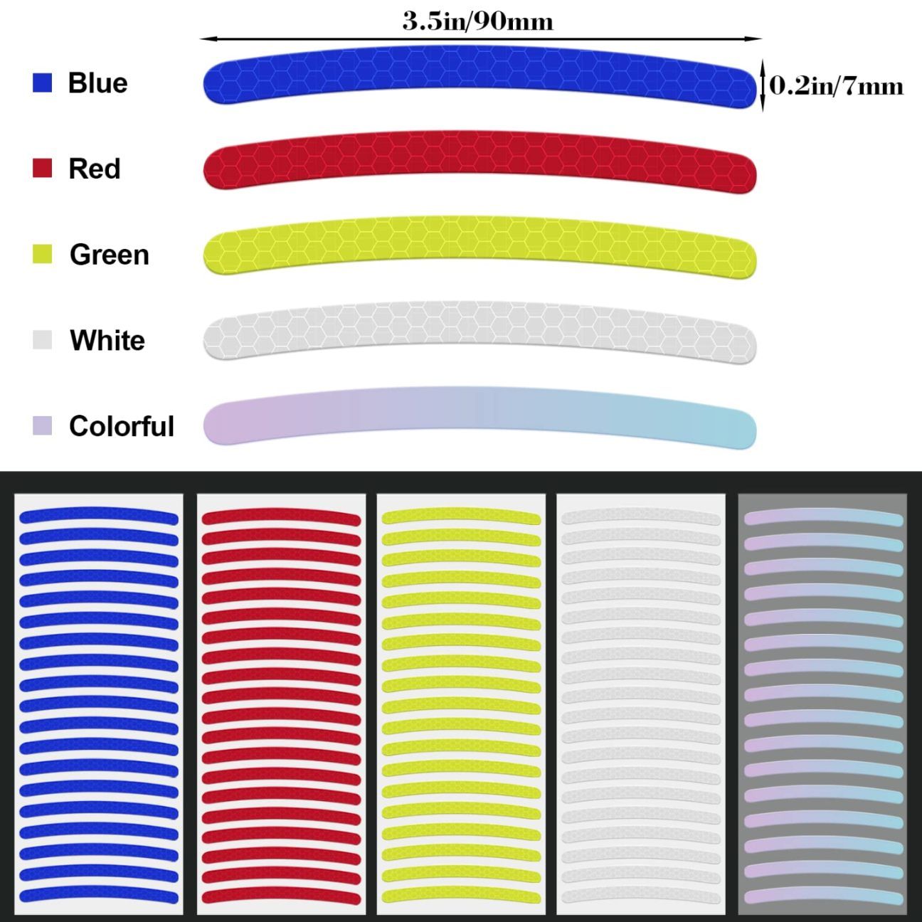 20 pcs 3D Reflective Wheel Tire Rim Stripe Sticker Tape for Car Motorcycle Cycling Bike Bicycle Night Safety Decals Stripe Universal Anti-Scratch Multicolor Reflective Rim Stickers, 20 Stripes
